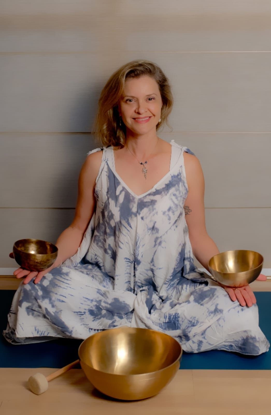 Há mais de 20 anos conduz pessoas a viverem com mais presença, leveza e equilíbrio por meio do yoga, da meditação, da dança e do som.